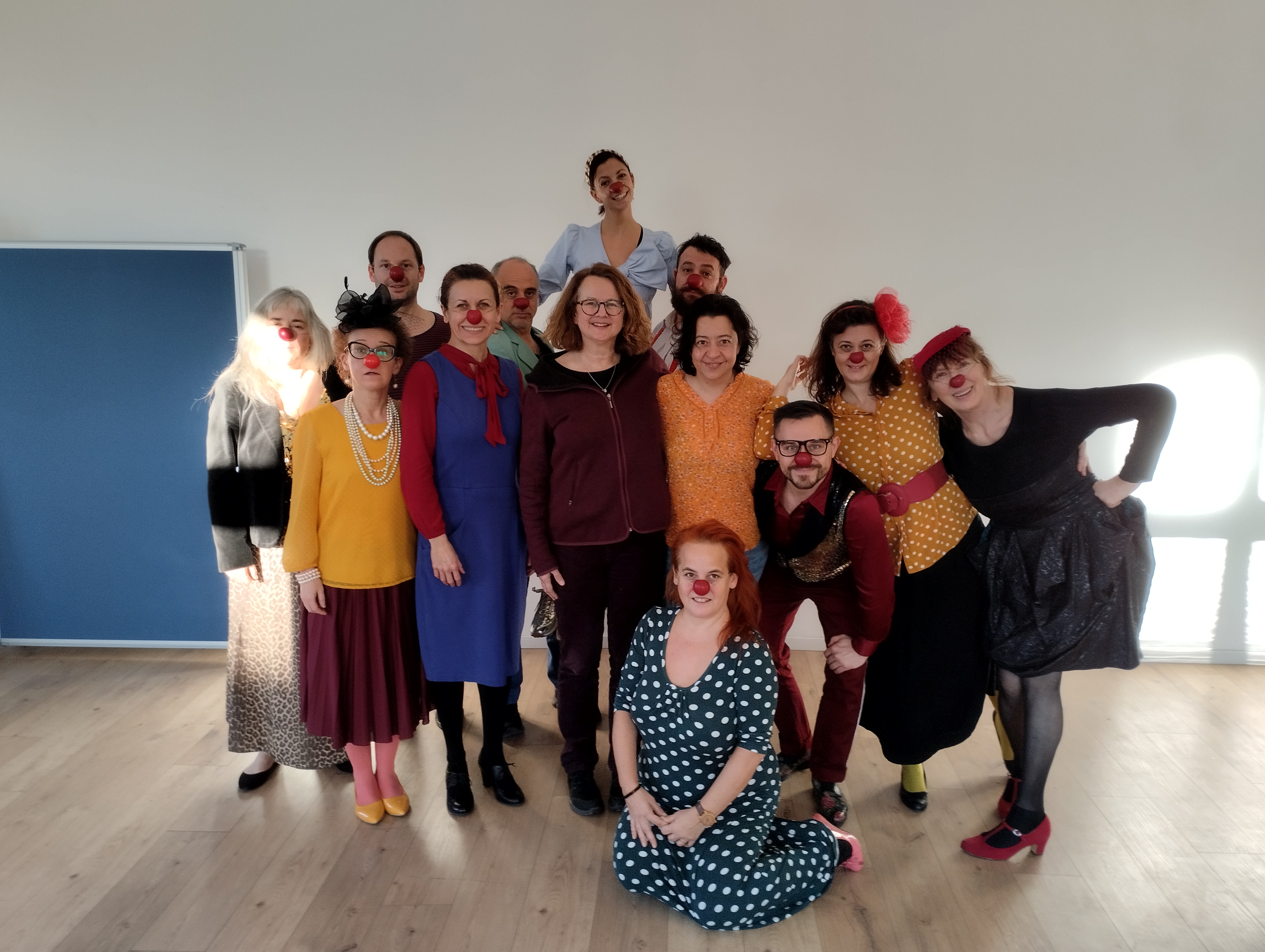 Novemberben négy napos szakmai workshopot tartottunk Magdalena Schamberger vezetésével. A több napos műhelymunka mindig nagy lehetőség a szakmai fejlődésre. Ezen a workshopon egy különleges témával, a melodrámával foglalkoztunk. Ennek a különleges színészi játékmódnak az eszközeivel és gyakorlataival azon a vékony határmezsgyén kísérleteztünk, ahol a bohóc érzékenyen tud egyensúlyozni a valódi, megrendítő emberi érzelmek és annak komikuma között. Ez a lelassult, érzelmi fókuszú, elsősorban fizikai játékmód rengeteg lehetőséget ad a közönséggel való mélyebb kapcsolódásra, különösen az idősotthonban végzett munkánk során.